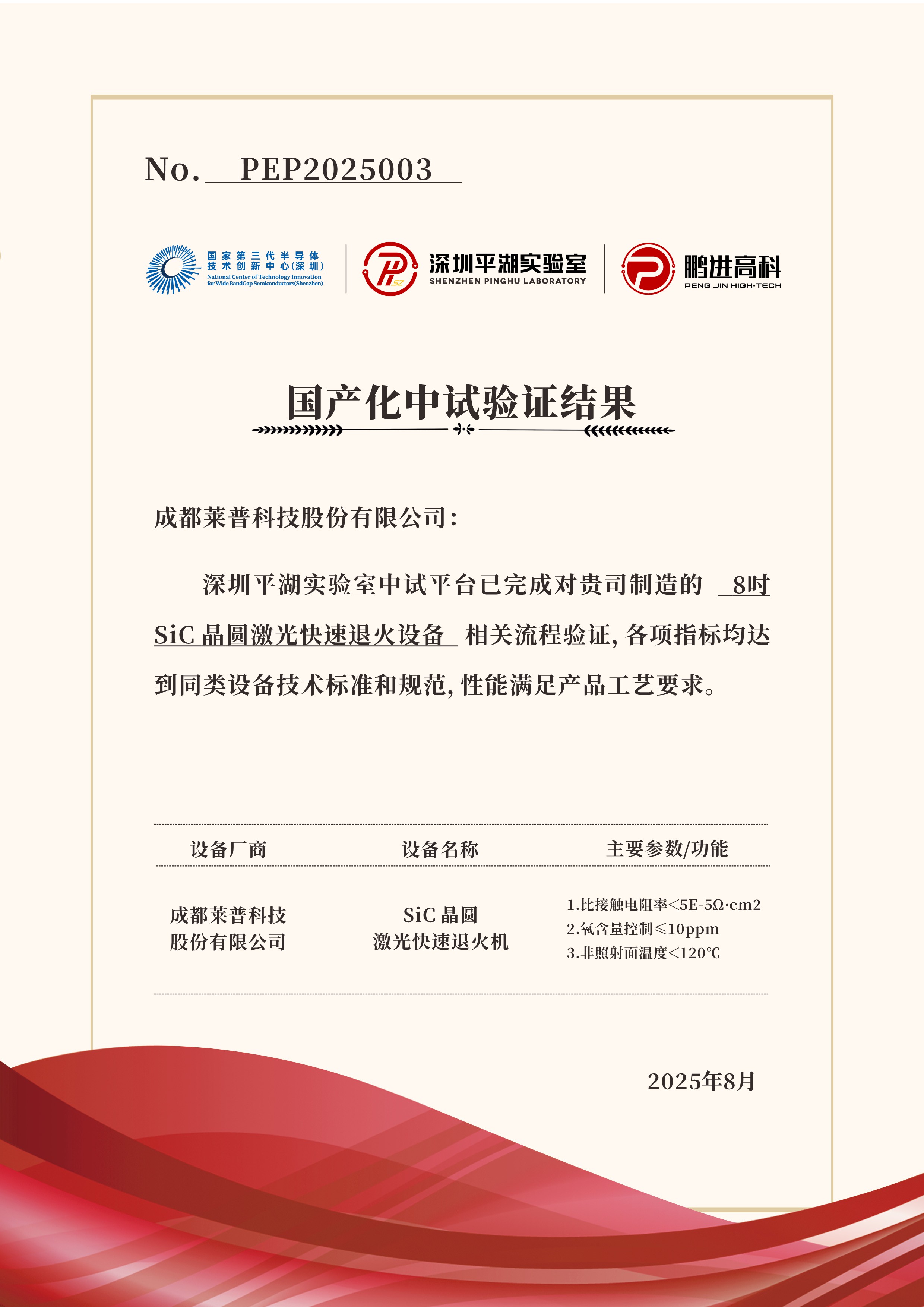 国产化中试验证:8吋SiC晶圆激光快速退火设备